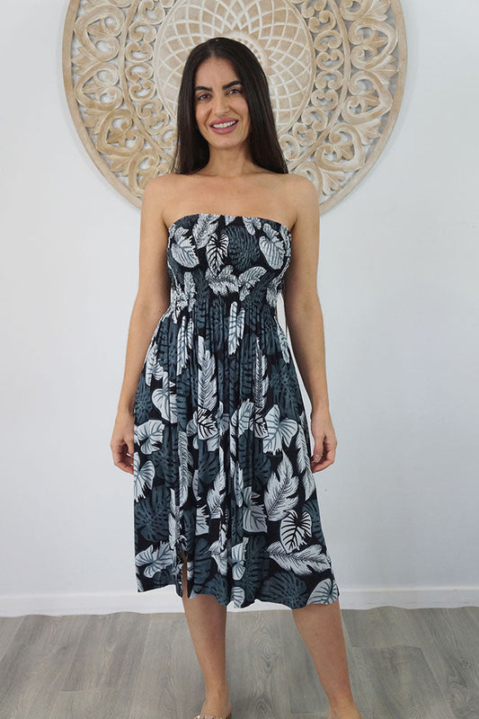 Smock Dress "Tropical Leaves"