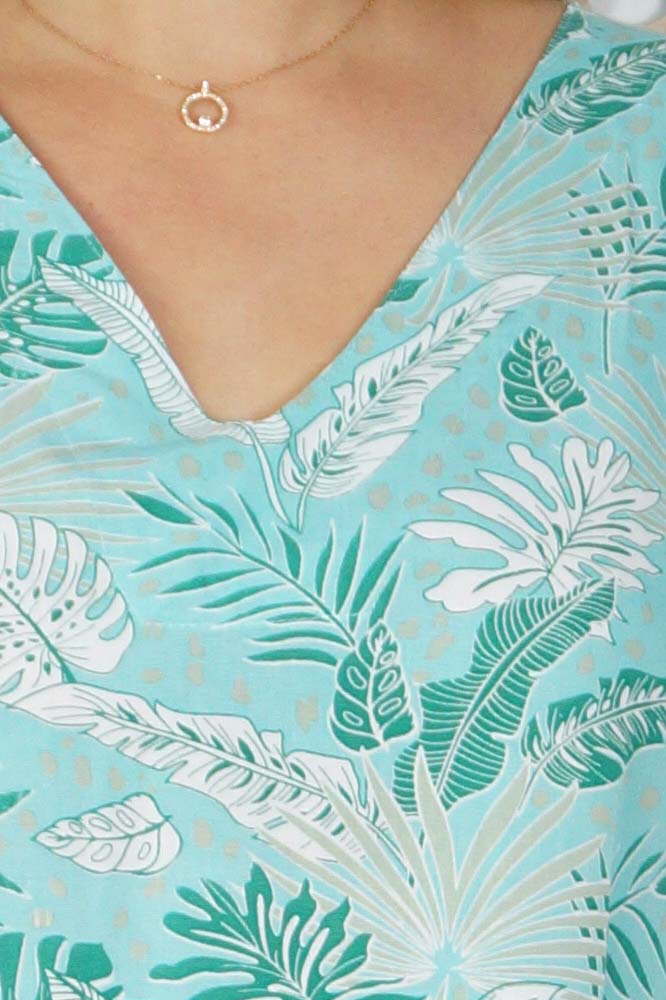 Made from rayon, this casual 3/4 sleeve tunic is great for around the pool or at the beach. Available in sizes 8-12, 14-18
