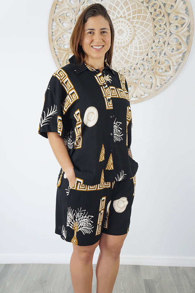 Step into summer with the Abbey Shirt and Short Set that brings a touch of holiday bliss to your wardrobe.