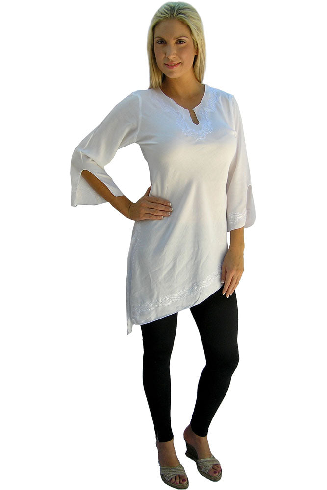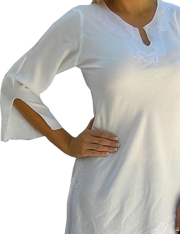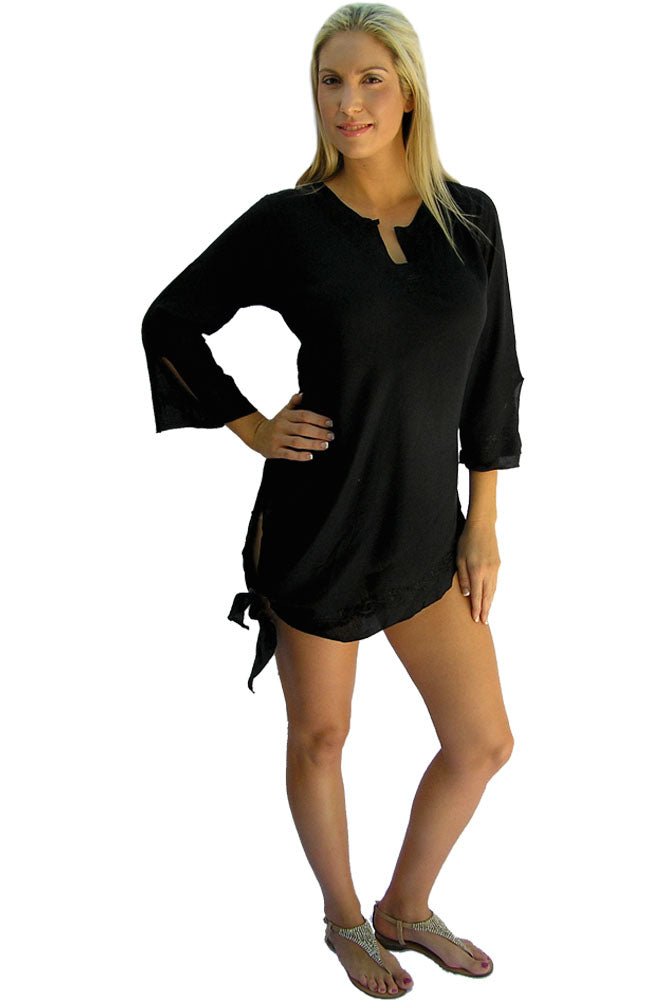 This lightweight rayon embroidered dress(or Top) is a beautiful garment that looks great over bikinis or even to go out at night. Come with bonus coconut buckle to tie up the sides if you wish. Sizes 8 - 14.