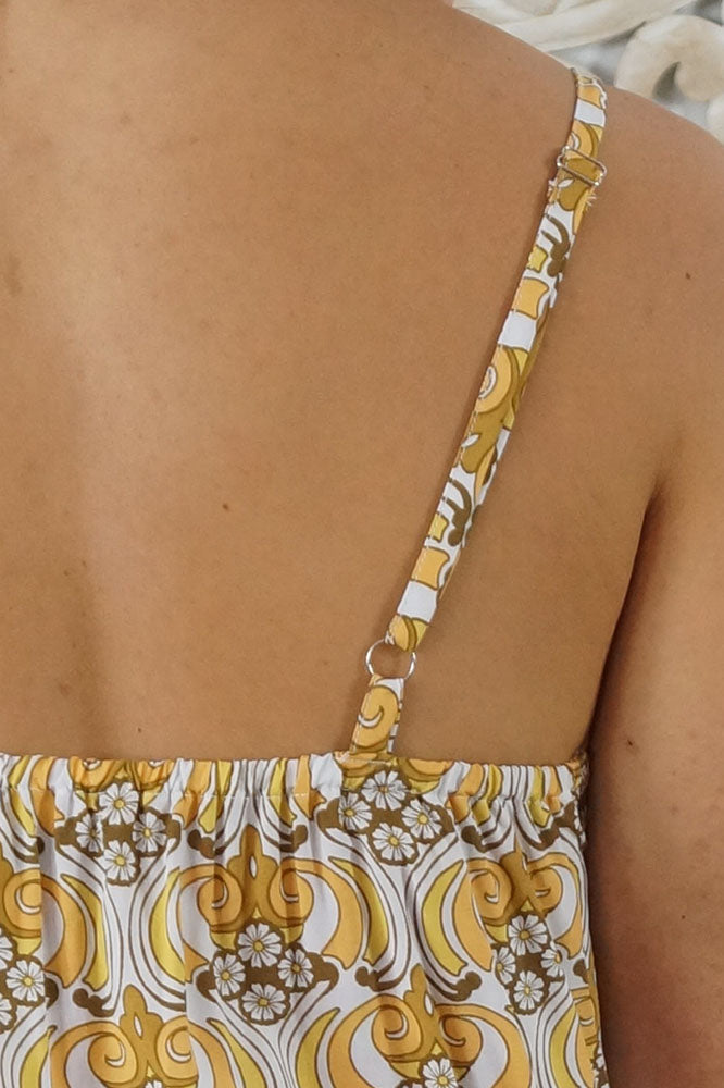 The Folly Dress is an easy fitting sundress. The adjustable straps and the elastic in the back make the Folly Dress flexible to fit your body. Pair with a pair of heels or a pair of sandals for a day in the sun.