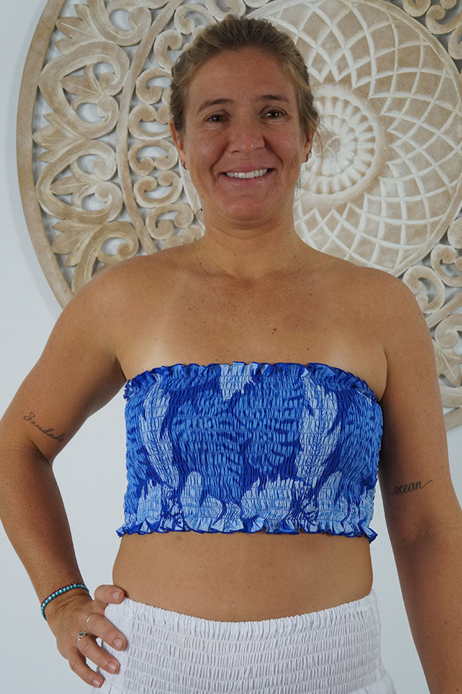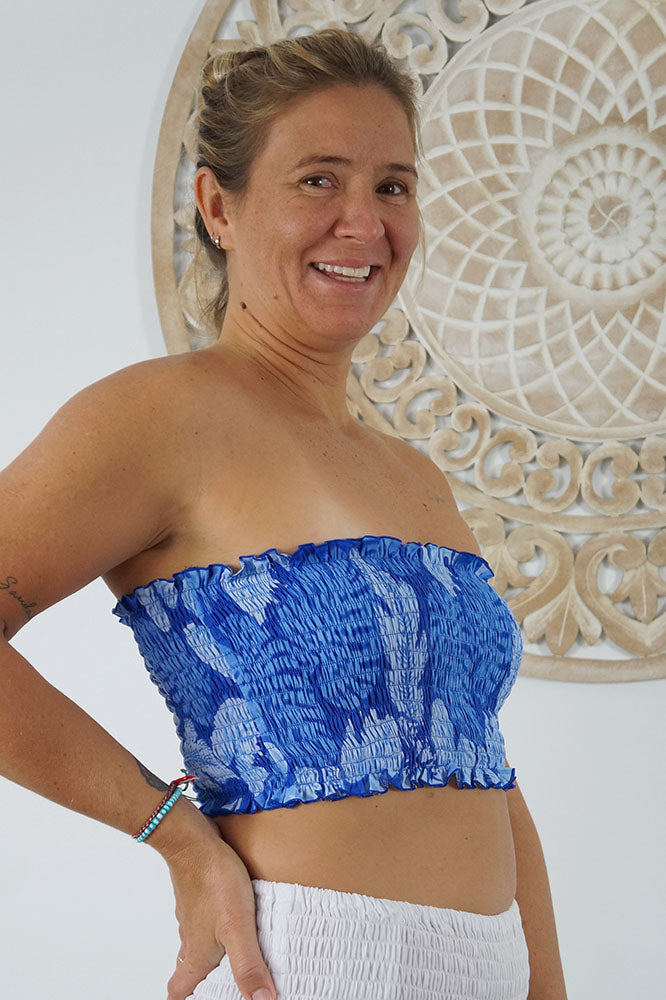 Soft strapless shirred boob tube. Stretchy banding for comfort. Perfect to wear under strapless tops or for layering. Free sizing to fit 8-14