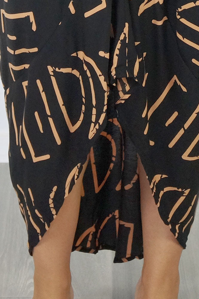 Comfortable day dress with short sleeves. Rising up in the front to a comfortable knee length. Free falling style to suit most body shapes.