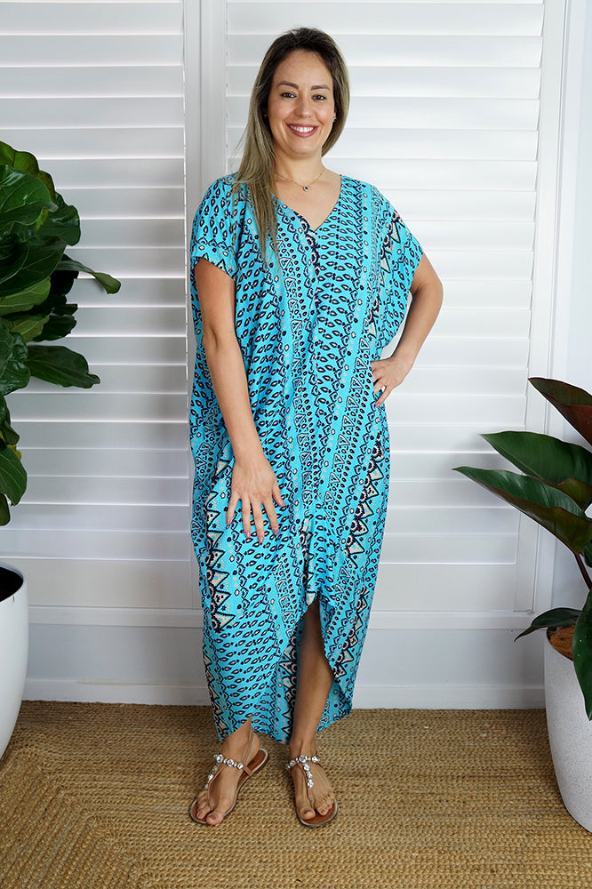All Kaftan/Cover Ups/Short Tunics are Free Size and will fit a size 10 up to a size 26.