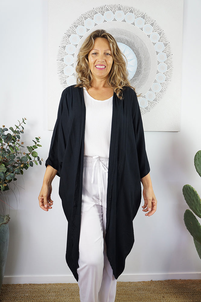 The Long Cape is draped loosely due to the soft cool nature of the rayon fabric.This will make a gorgeous addition to any simple outfit. A definite must have for this summer!