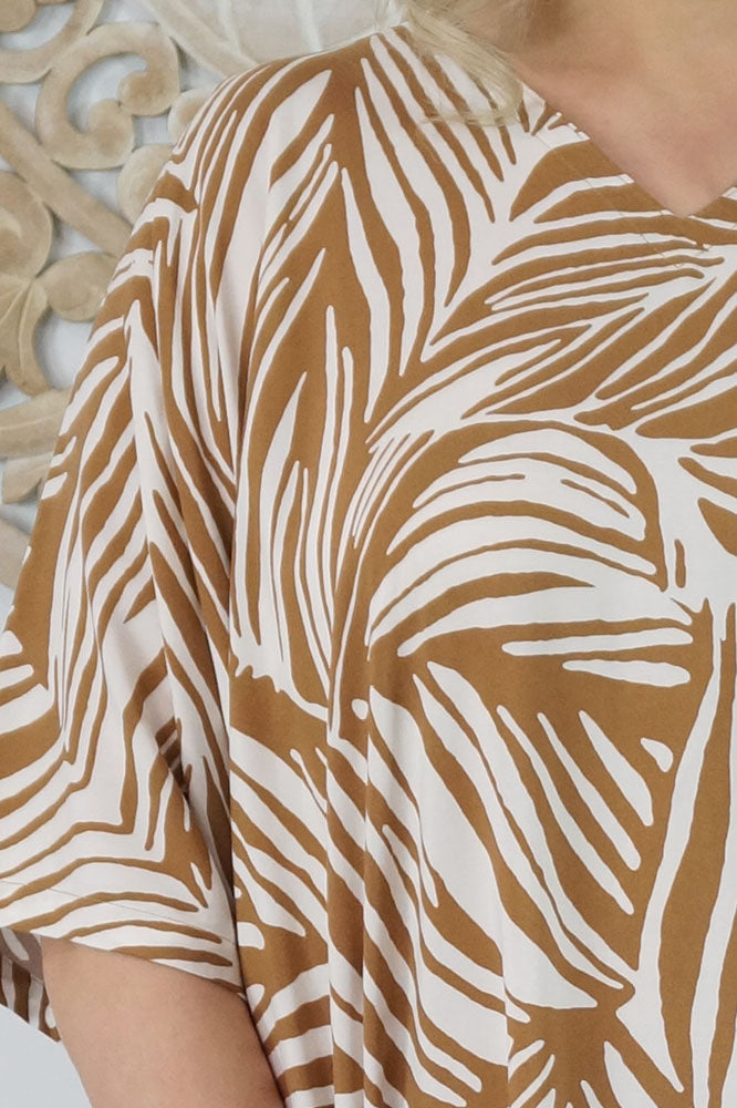 Our kaftans range from rich solid colours to funky patterns. A simple V-neck in the front, side splits on the bottom and a free size from 10-26, this product fits everyone (seriously, these fit everyone).