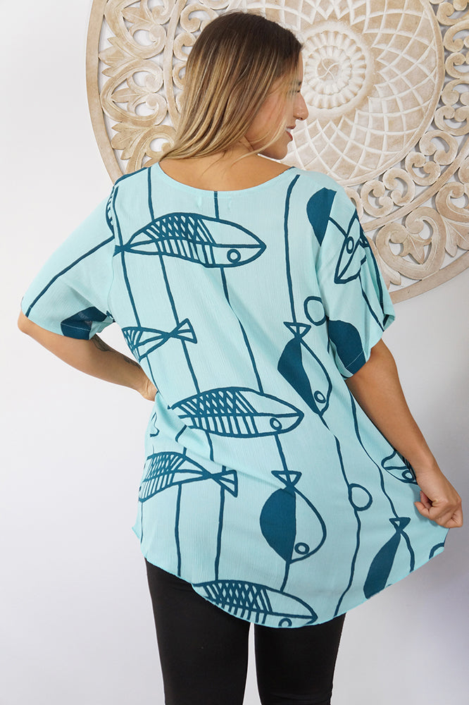 A flowy top with sleeves made from a cool crinkle rayon for those hot summer days. Sizes available 10-16, 18-22