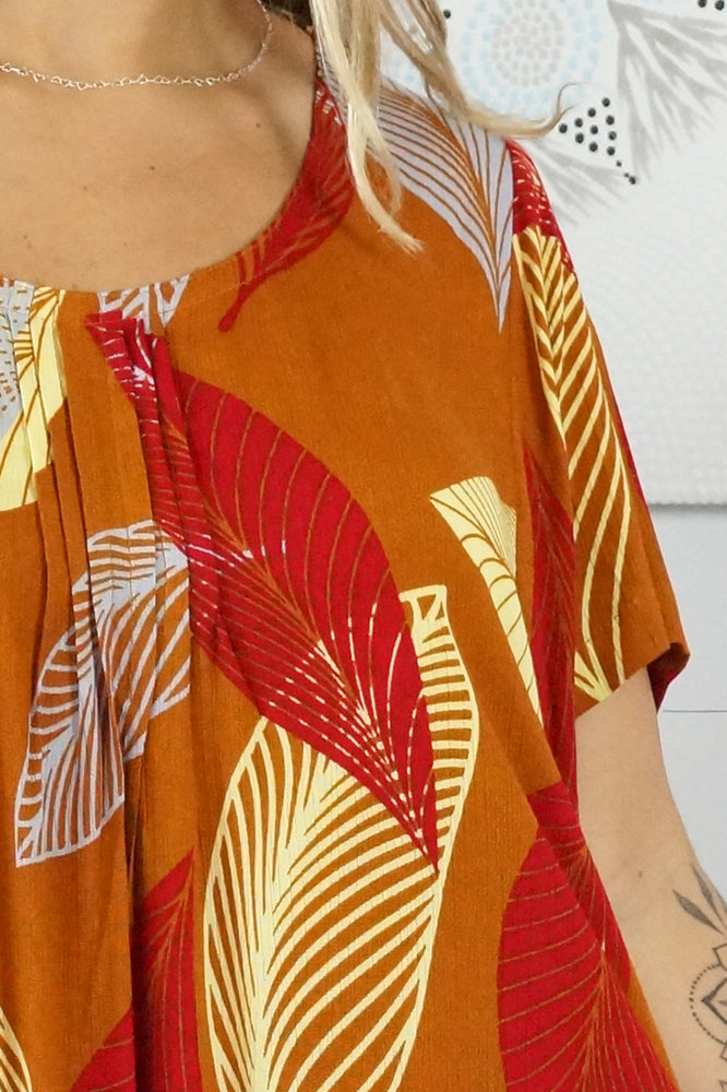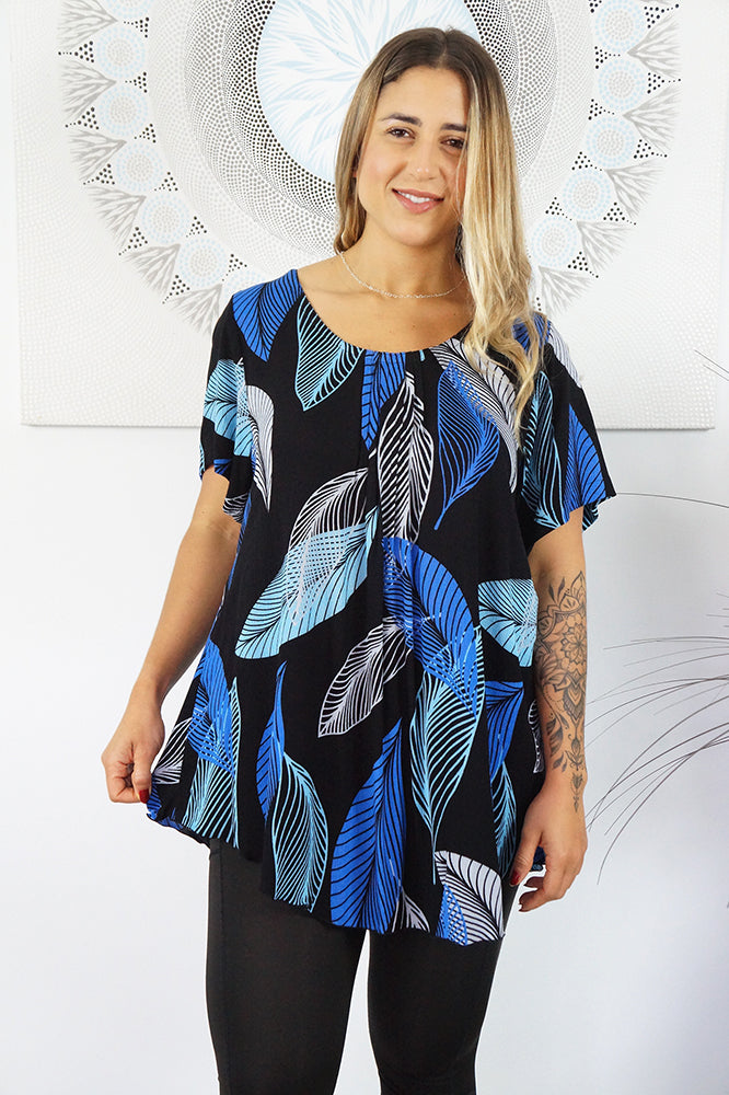 A flowy top with sleeves made from a cool crinkle rayon for those hot summer days. Sizes available 10-16, 18-22