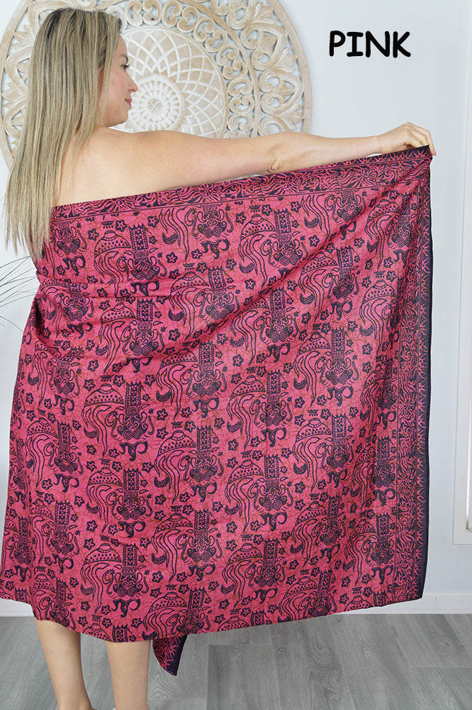 These "Primitive" sarongs are a great cover up for a day at the beach, pool, lake or wherever else your heart desires. Sarong measures approximately 2.1M x 1.15M with no fringe and 100% cotton .